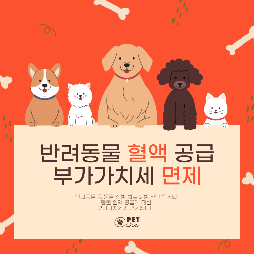 반려동물 등 동물 질병 치료·예방·진단 목적의 동물 혈액 공급에 대한 부가가치세가 면제됩니다.